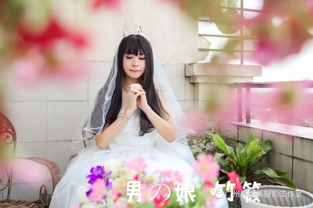 第4套是婚纱。婚纱的洁白无瑕代表着女人期待的纯洁的感情生活,它象征爱情的永恒,在每个女人亦或者是女装子心里都是那么纯洁美丽。竹筱向上天许愿,他所期待的不是那个骑着白马的翩翩王子,而是那个同样穿着圣白婚纱的他。